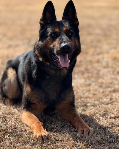 Chuck has extreme food, ball and hunt drive. His bite is full and powerful to the point that he has broken multiple brand new sleeves in protection training. Chuck is a dominant male and true to the German Shepherd temperament not seeking attention from strangers but is stable in social situations. Excellent environmentals.