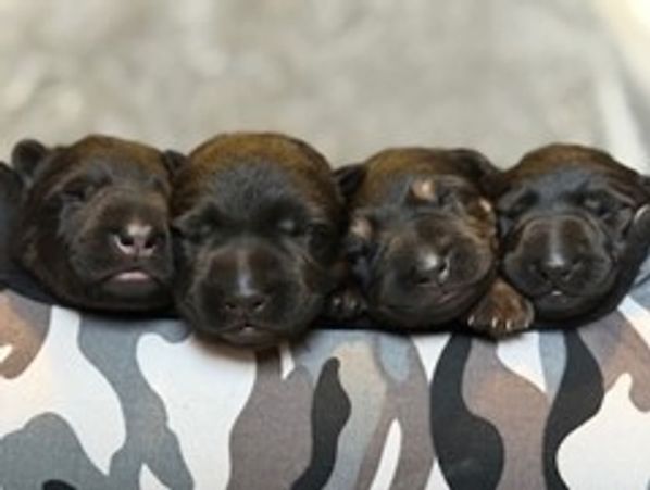We are excited to announce the arrival of our "G" litter on November 29, 2023. Djara whelped 7 healthy puppies. We have 4 males and 3 females. This pairing should produce puppies suitable for many different avenues (sports, active pets, police, SAR). We are currently accepting deposits as we have both male and female availability.